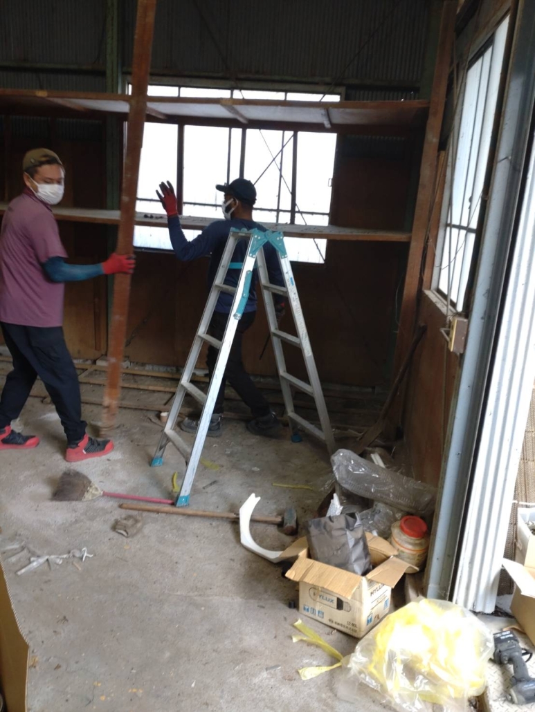 まずは事務所スペースと倉庫部分を分けて作業を開始。