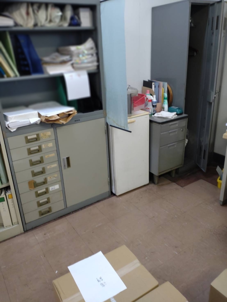 主な撤去物 書類棚・キャビネット・ロッカー・デスク・椅子・大量の書類・文房具類・小型家電・ダンボール